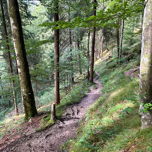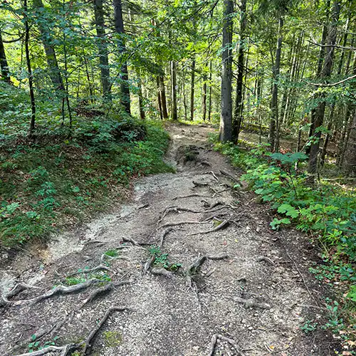 Der Elfenhain findet sich am Kienberg, quasi dem Stadtberg von Kufstein. Ein herrlicher Wanderweg, der von vielen Trailrunnern ebenfalls gerne genutzt wird, führt hier durch einen zauberhaften urwüchsigem Wald. Alte Bäume, Wurzelpfade und dichte Vegetation prägen das Bild. Aber gelegentlich bietet sich die Möglichkeit, einen grandiosen Ausblicken auf die Stadt und die umliegende Tiroler Landschaft erhaschen zu können.
