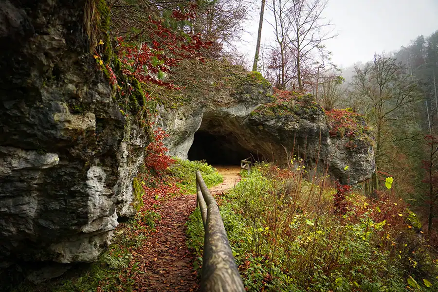 Rund um Pottenstein gibt es ein gut ausgebautes und weit verzweigtes Wanderwegenetz und mehrere dieser Routen führen direkt an der Teufelshöhle vorbei oder lassen sich mit einem Höhlenbesuch verbinden. Ein schöner Einstiegspunkt ist der Wanderparkplatz Weihersbachtal an der B 470. Von dort aus führt der markierte Weg mit dem Zeichen „Blauer Querbalken“ zum Schöngrundsee und weiter zur Teufelshöhle. Diese leichte Strecke eignet sich ideal für einen entspannten Ausflug und lässt sich wunderbar mit einer Besichtigung der Höhle verbinden. Darüber hinaus gibt es eine Rundtour unter dem Namen Dolomitfelsen – Teufelshöhle Loop, die bei Pottenstein startet, die Höhle einschließt und mit Felsformationen und Naturerlebnis kombiniert.
